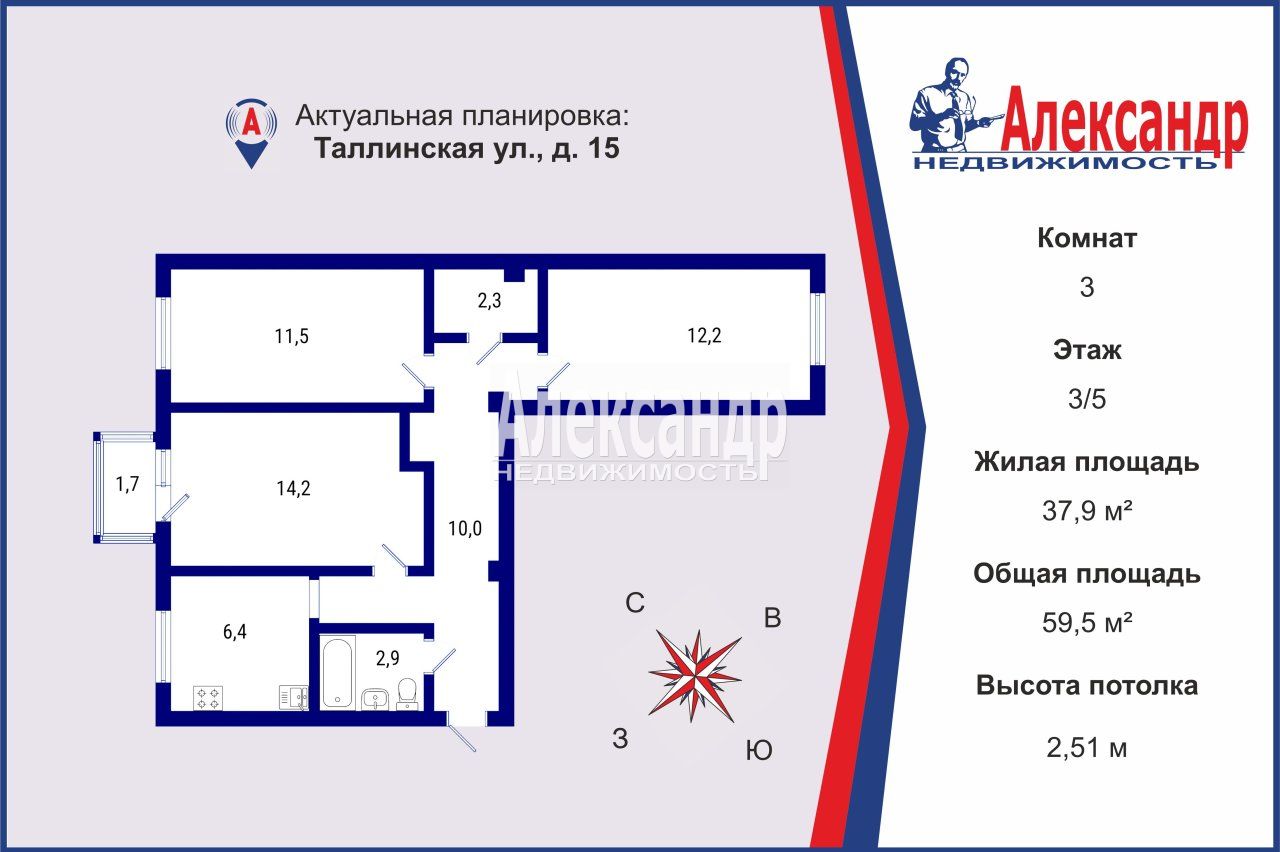 • Жилая площадь 37.90 м2